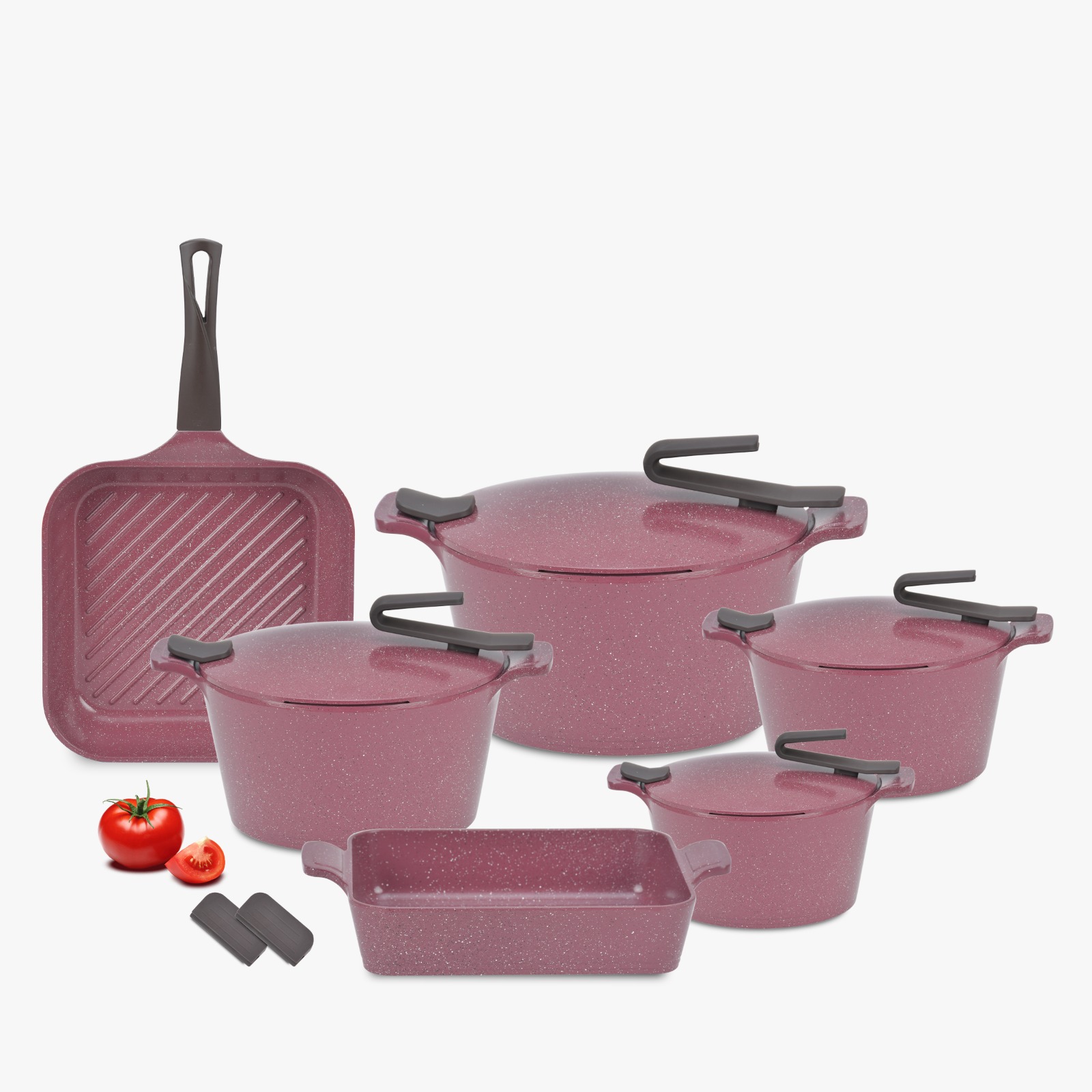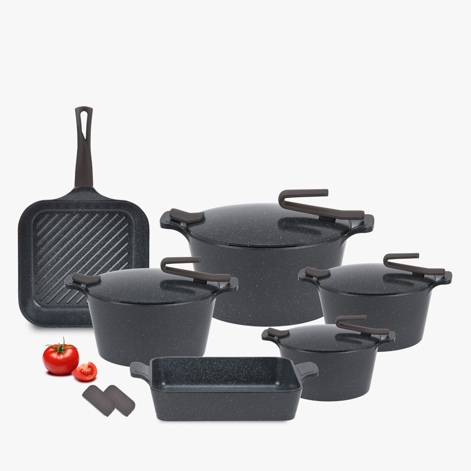 طقم جرانيت بيركس 10 قطع 4 حله مقاس (30-26-22-18) جريل م 28 + طاجن مستطيل م 31